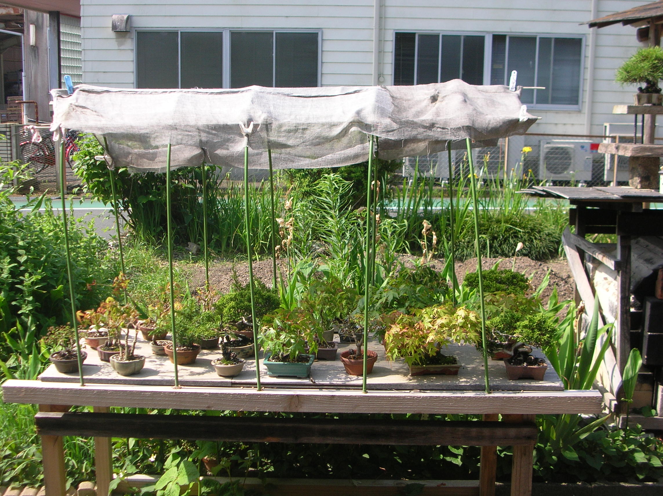 昨年から寒冷紗の支柱を園芸用品で工夫して